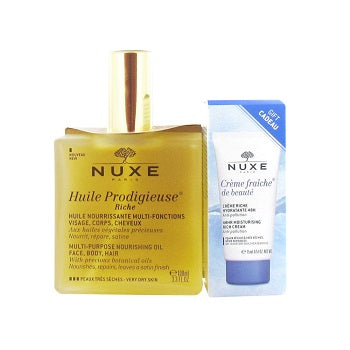 Nuxe Huile Prodigieuse Riche Multi-Purpose Oil 100ml + Crème Fraîche de Beauté Rich Moisturising Cream 48H 15ml Offered
